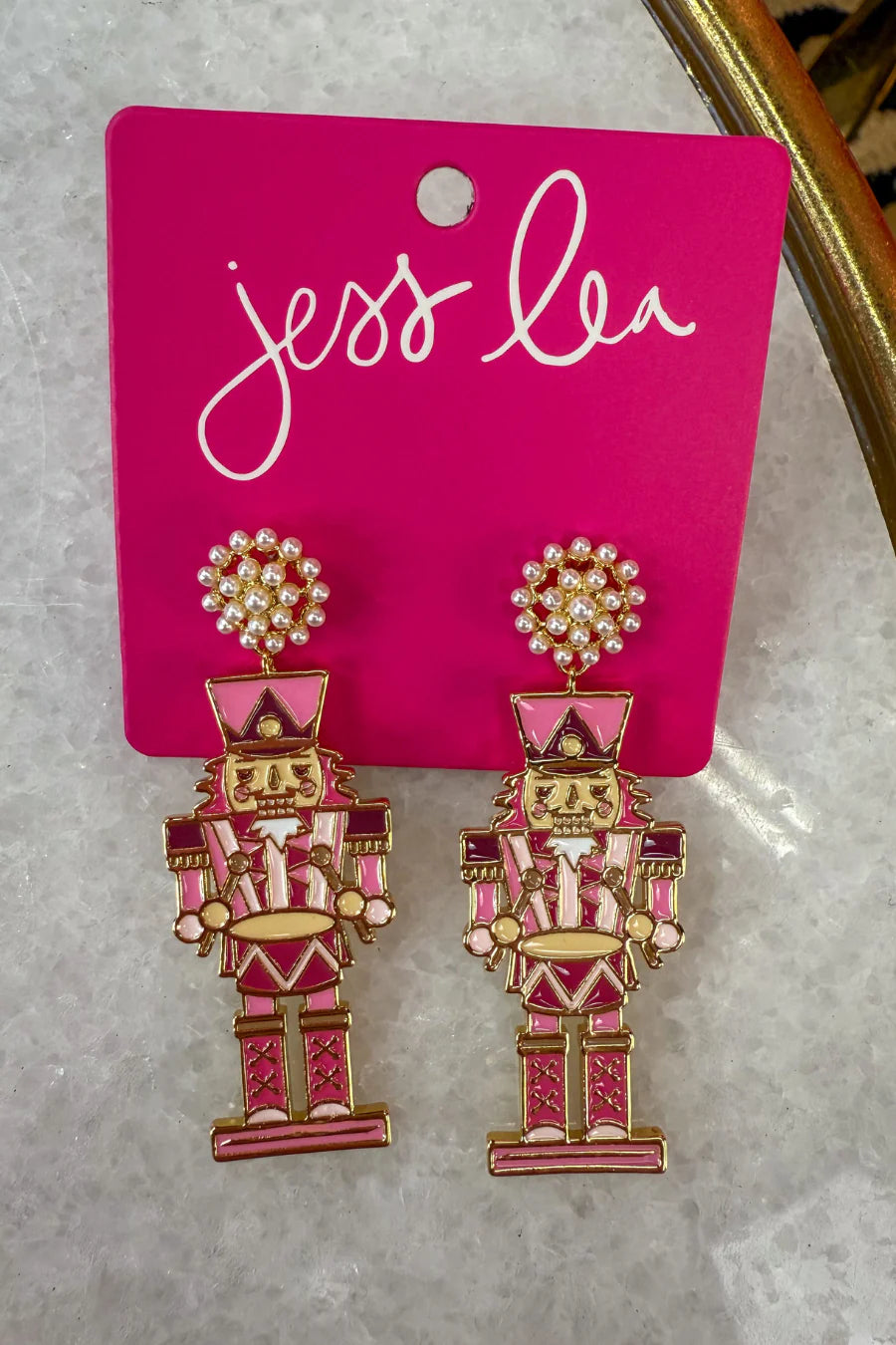 Bring a touch of whimsical holiday magic to your look with the Pink Nutcracker Vibes Earrings. These beauties feature a sparkling pearl-cluster stud with a charming pink nutcracker dangling below, adding a fun and feminine pop of personality to any festive outfit. Light, playful, and full of holiday cheer — they’re the perfect finishing touch for all your merry moments.