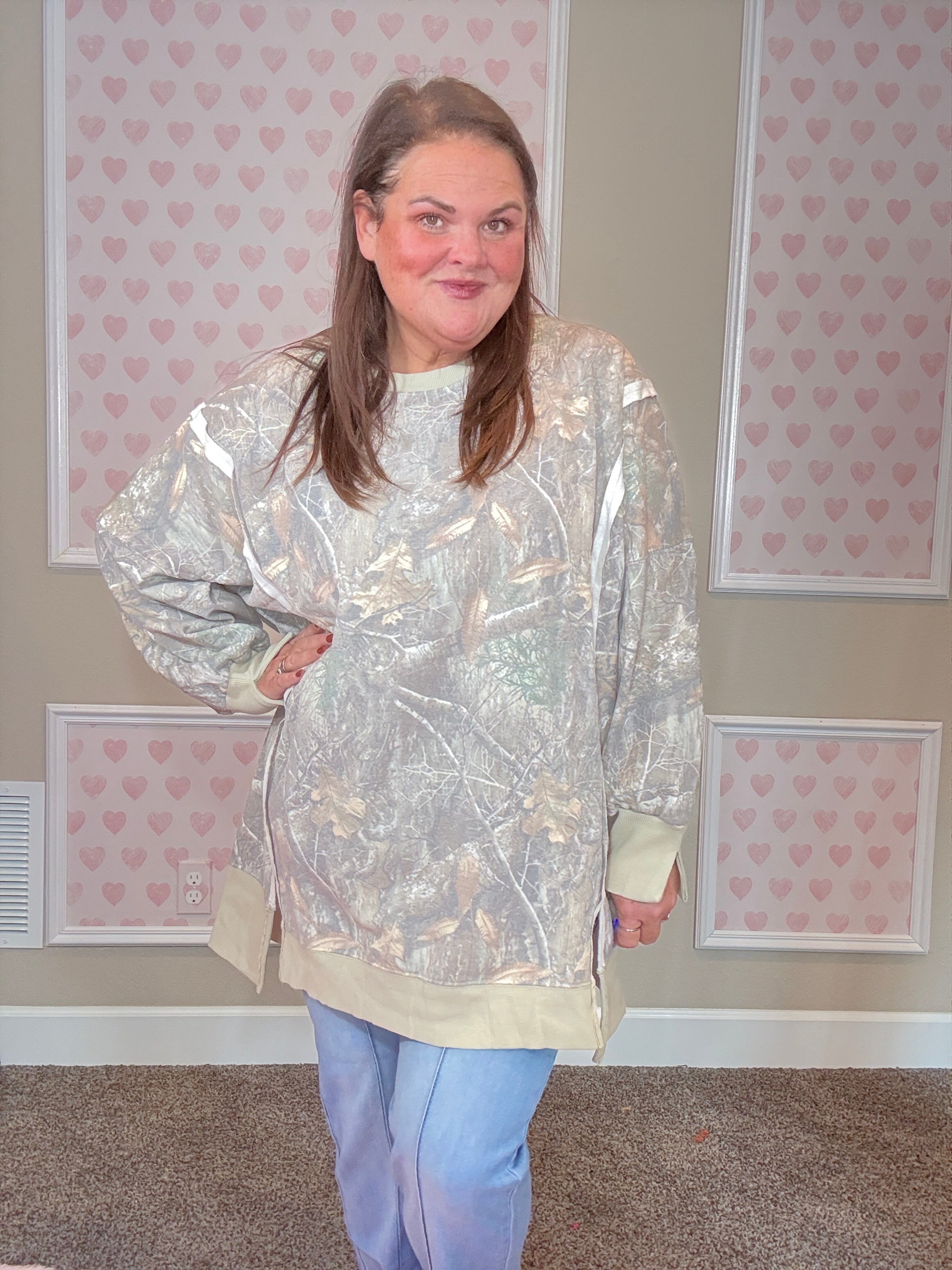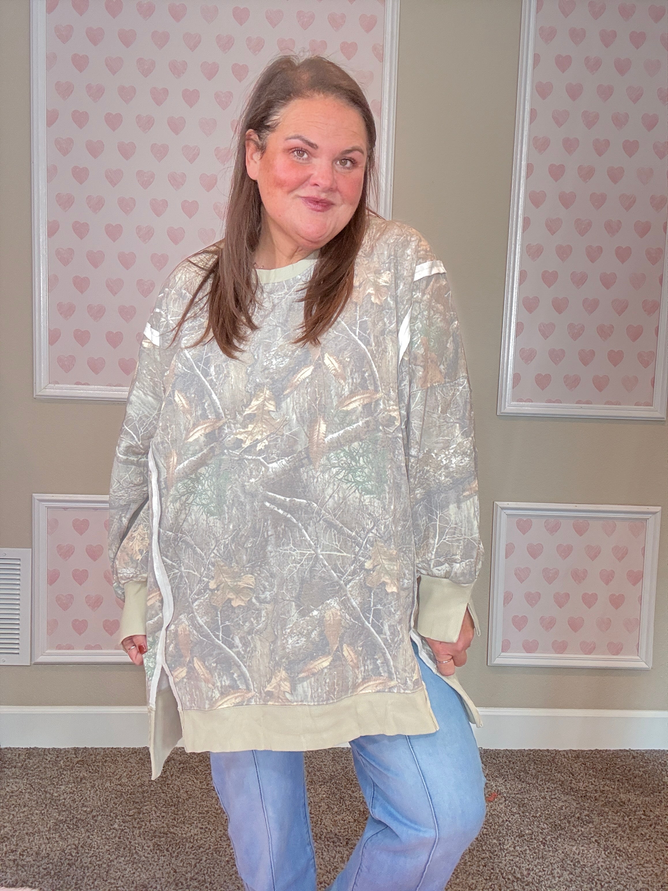 Our Camo Classic Crew Pullover is the perfect mix of timeless comfort and trendy design. Made with a soft cotton-blend fabric that feels like your favorite sweatshirt on the inside, this slouchy pullover brings that effortless, lived-in look you’ll reach for again and again.