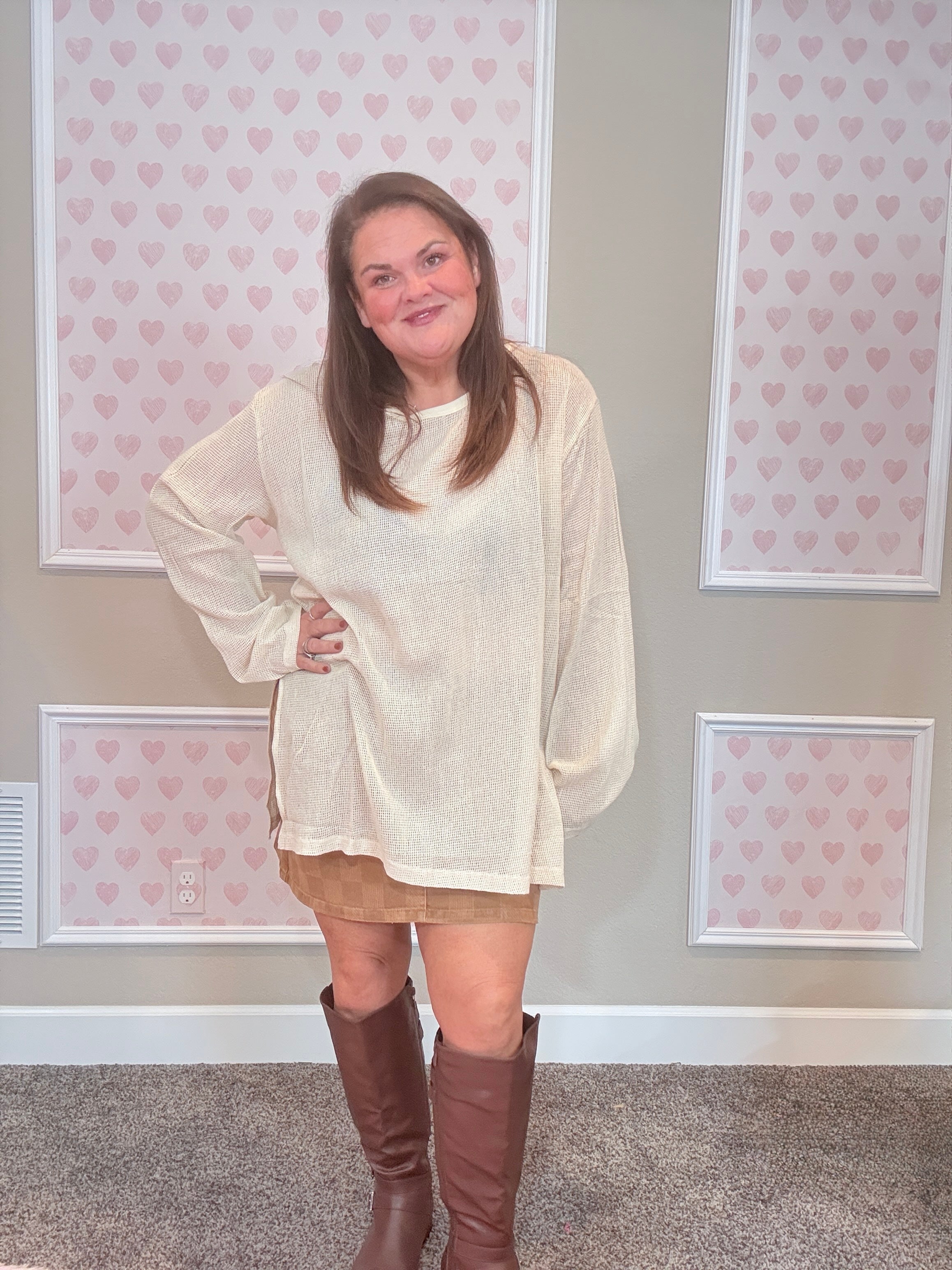Meet your new everyday favorite — the Mellow Mesh Cotton Top! This effortlessly relaxed piece is all about comfort, breathability, and that laid-back look we love. Designed with a slouchy, oversized fit, tunic length, and wide boatneck, it’s made for easy days and cozy moments. The cotton mesh fabric keeps it light and airy, perfect for layering or wearing solo as the seasons shift.