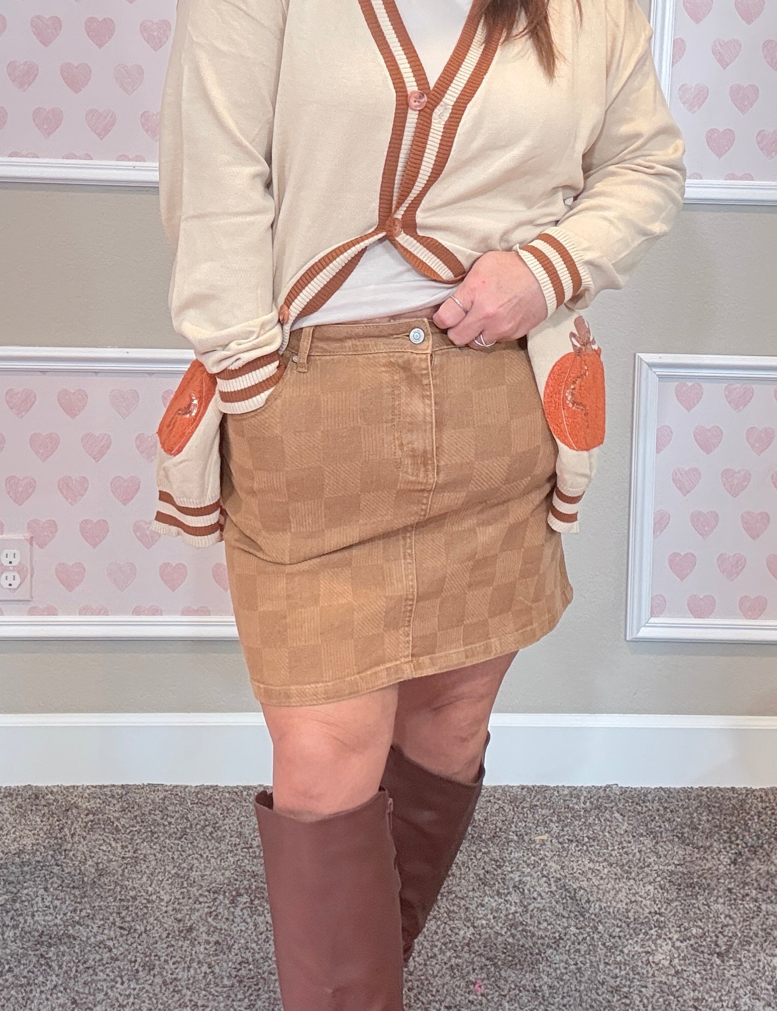 Add a playful twist to your everyday look with our Spice It Up Checkered Denim Skirt! This trendy mini features a soft, stretchy denim blend with a subtle checkered print that brings just the right pop of personality. With functional side and back pockets and a flattering fit, it’s the perfect mix of comfort and style.