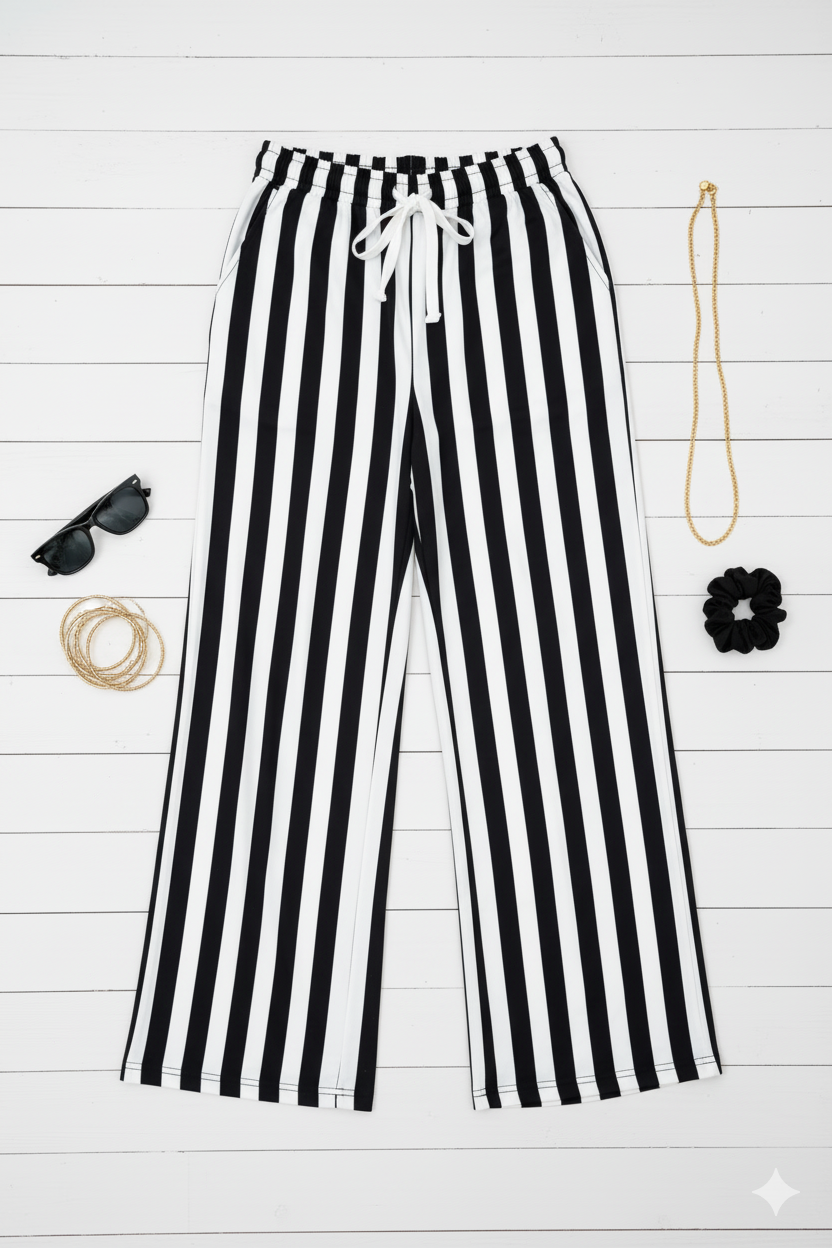 Looking for the perfect mix of comfort and style? Meet our Vertical Vibes Stripe Pants â the ultimate âfeel-goodâ pants youâll never want to take off! Made from cloud-soft, ultra-stretchy fabric, these wide-leg pants move with you and flatter every figure. The vertical stripe design adds length and a little pop of personality to any outfit.