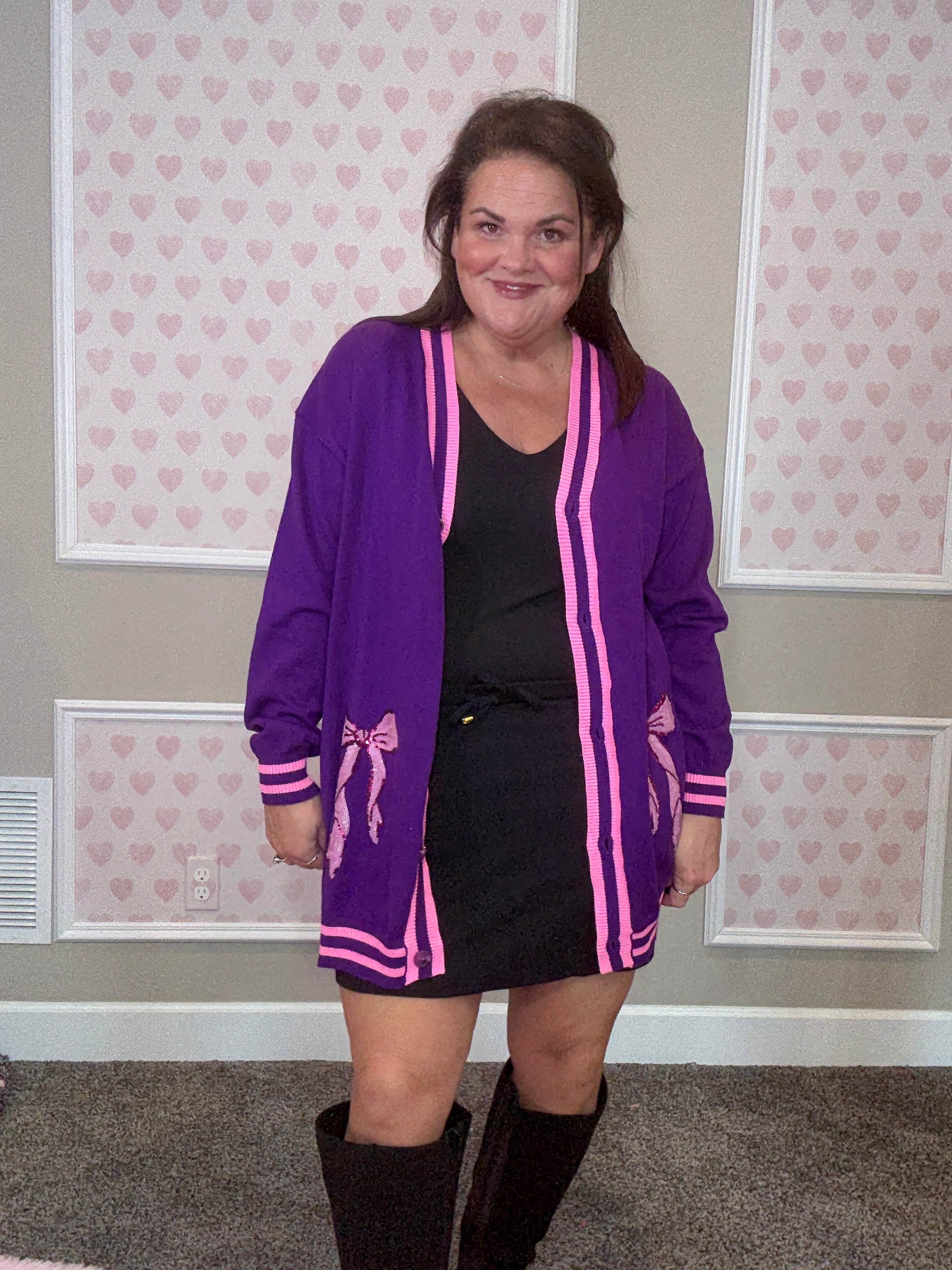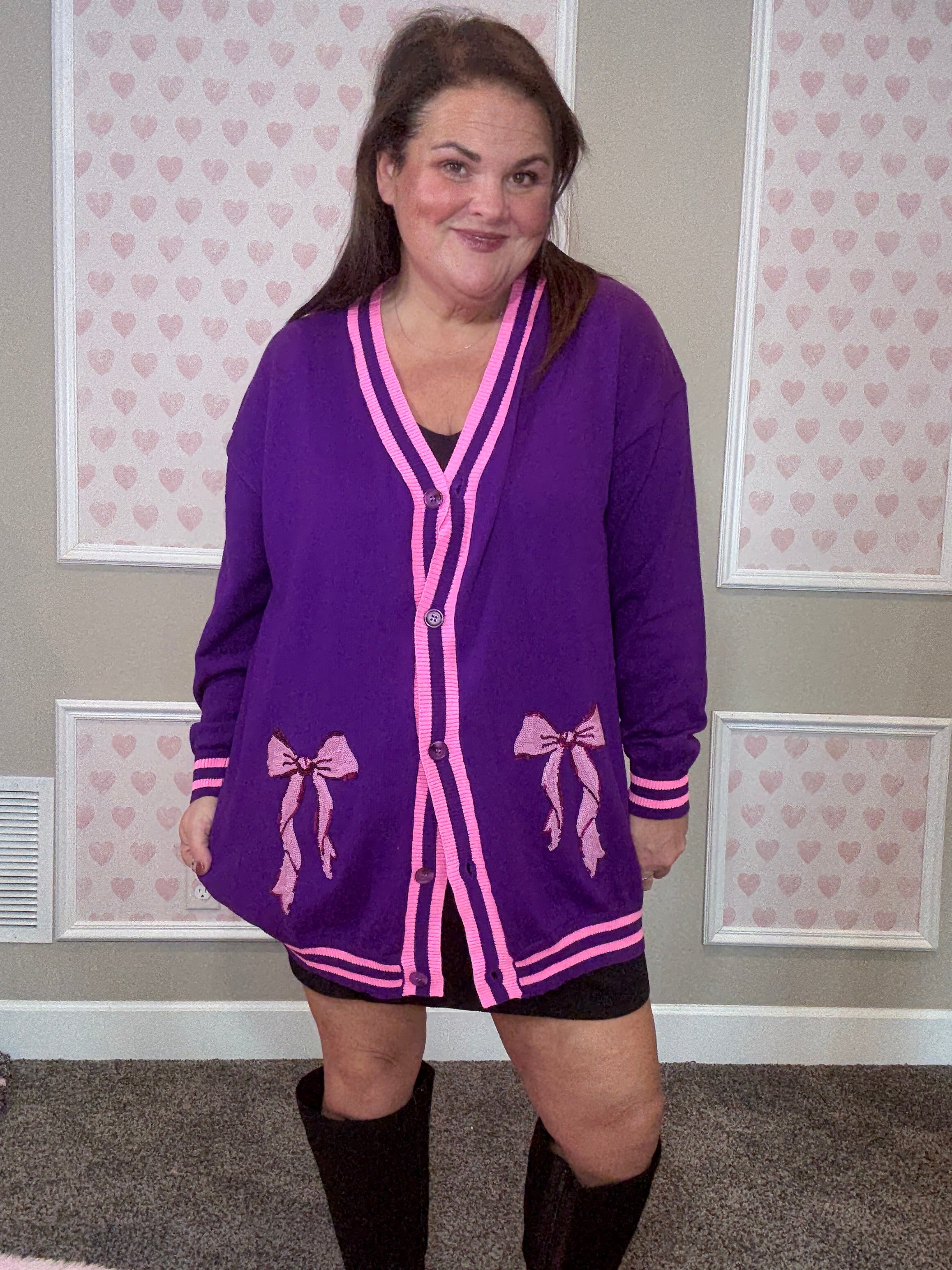 Sweeten up your fall wardrobe with our Ribbons and Bows Cardigan! Lightweight yet cozy, this playful piece is detailed with charming bow accents and functional buttons—making it the perfect layer for crisp autumn days. Soft and versatile, it’s designed to bring a girly, festive touch to any outfit while keeping you comfy.