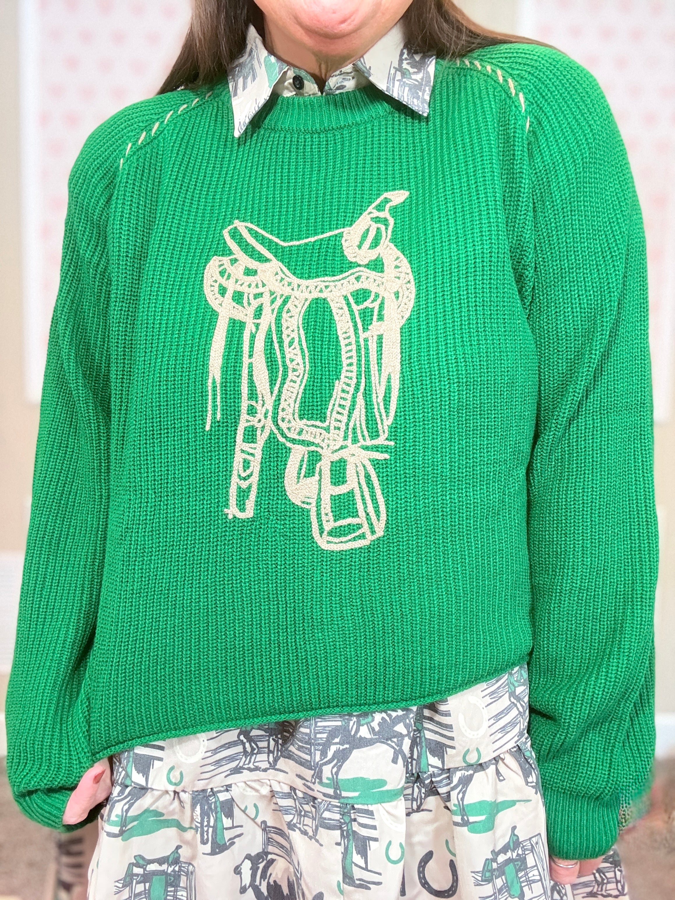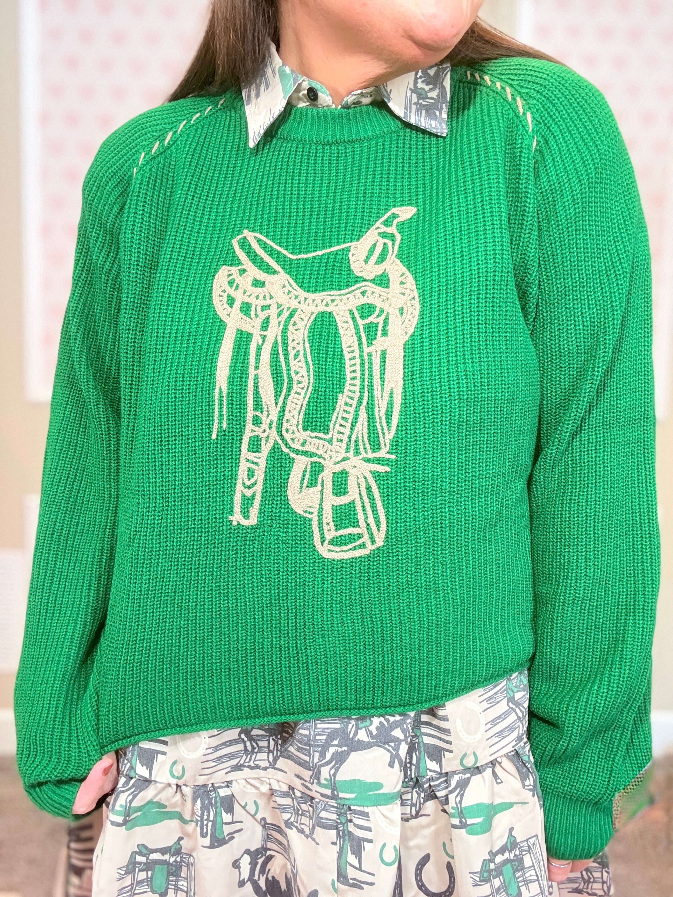 Made with a 60% cotton / 40% polyester blend, this sweater brings that high-quality, thicker knit feel you’ll love on crisp fall days. The subtle saddle stitching embroidery adds just the right western touch, giving you cozy chic with a nod to the ranch.