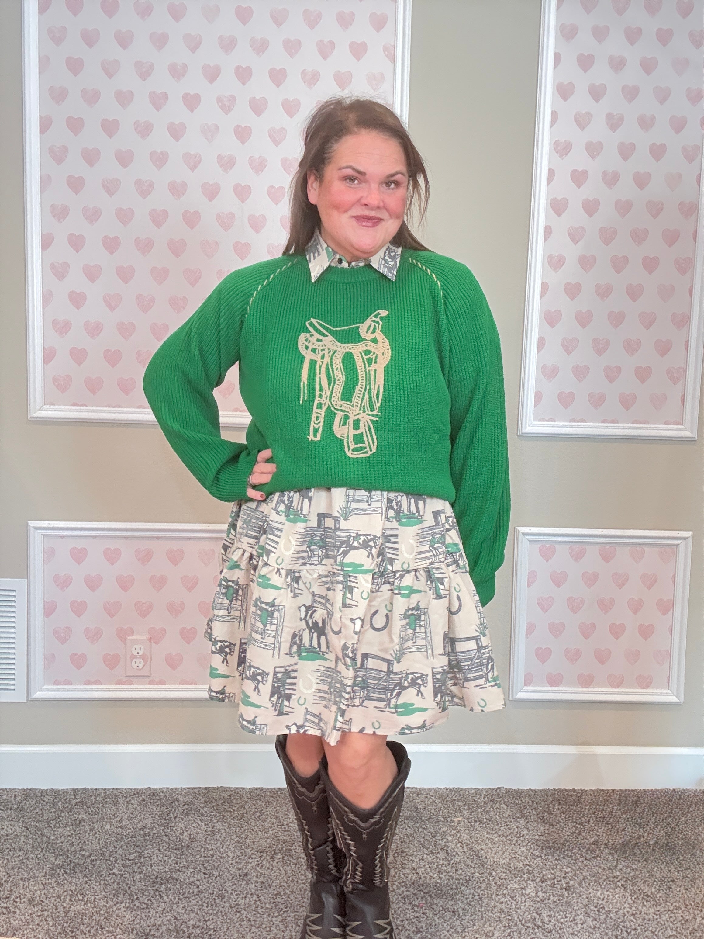 This knit thoughhhhh 💚 — it’s literally the perfect shade of green for fall. The kind that instantly makes every outfit pop. We’re all about layering vibes, and this sweater pairs seamlessly with our Greener Pastures pieces or tossed over dresses like the Hitchin’ Post.