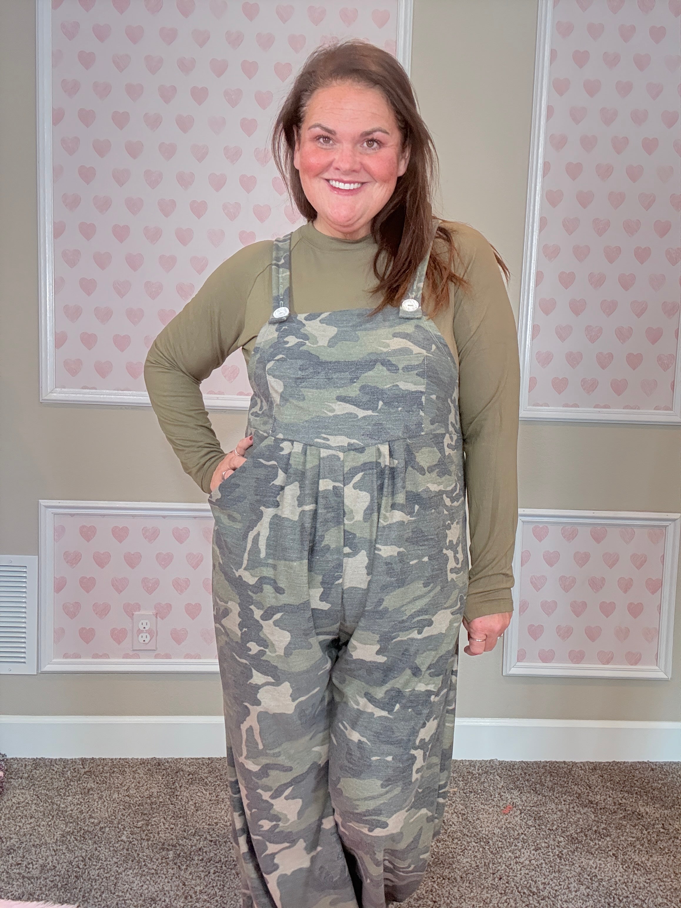 The overalls everyone’s obsessed with — now in a chic camo print! Meet the Camo Karli Overalls, the perfect mix of comfort, style, and versatility. With a relaxed fit, front pocket detail, and adjustable straps to customize your length, these are the overalls you'll wear on repeat. Whether you’re chasing littles, running errands, or styling it up for brunch, these were made for the comfy mom style life.